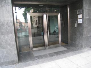 m². Carpintería metálica de acero inoxidable en puertas con un grueso de hoja de 40 mm, formado por bastidor de acero inoxidable y doble chapa con aislamiento térmico-fónico intercalado, i/cerco, herrajes de colgar y seguridad en acero inoxidable.