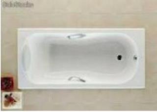 ud. Bañera de hierro fundido de Roca o similar, modelo Malibú en blanco de 1,70x0,75 m asas cromadas, con grifería baño-ducha-teléfono de Roca o similar, Monomando Naia cromada o similar y válvula con rebosadero de 32-40 mm, totalmente instalado.