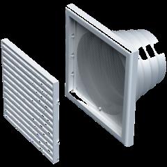 ud. Suministro e instalación de rejilla cuadrada de plástico con lamas horizontales móviles, modelo VPA de 186x186 mm o similar de color blanco y cuello de 115 mm de longitud, para conducto de impulsión o extracción de 100 mm de diámetro, montada en pared o techo. Incluso p.p. de elementos de fijación y accesorios. Totalmente montado y conectado al conducto de extracción. Según DB HS 3. Calidad del aire interior (CTE).